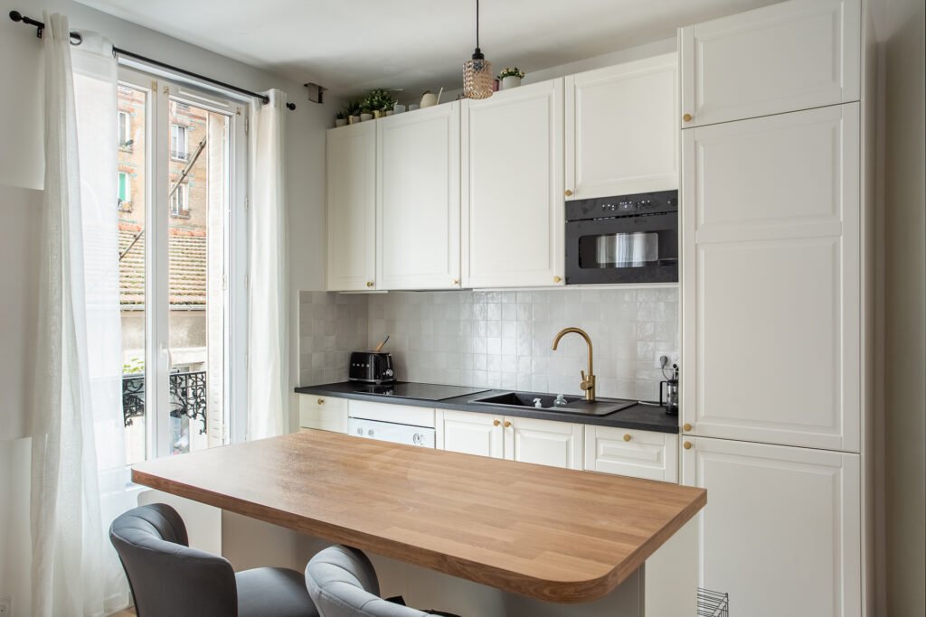 Transformation de la cuisine et rénovation en profondeur de la chambre avec isolation des murs, peinture et pose de parquet stratifié. Un projet combinant modernisation esthétique et amélioration du confort, créant des espaces de vie agréables et fonctionnels pour le quotidien.