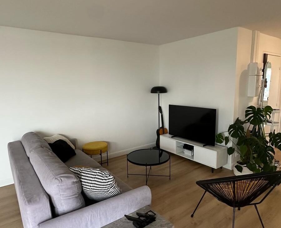 Le salon, devenu lumineux et spacieux, s'harmonise parfaitement avec la cuisine moderne aux lignes épurées. L'espace de vie a été optimisé pour créer une atmosphère chaleureuse et contemporaine, où chaque détail a été soigneusement étudié pour allier esthétique et fonctionnalité.