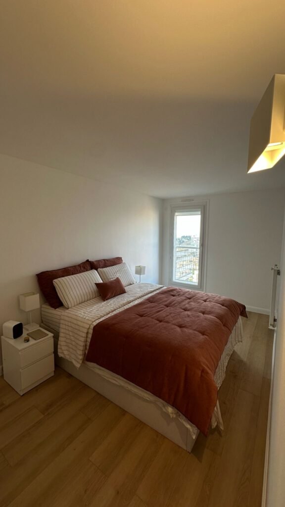 La chambre s'est transformée en un véritable cocon de bien-être, avec ses rangements intelligents et son ambiance apaisante. Un espace intime où le confort rencontre l'élégance.