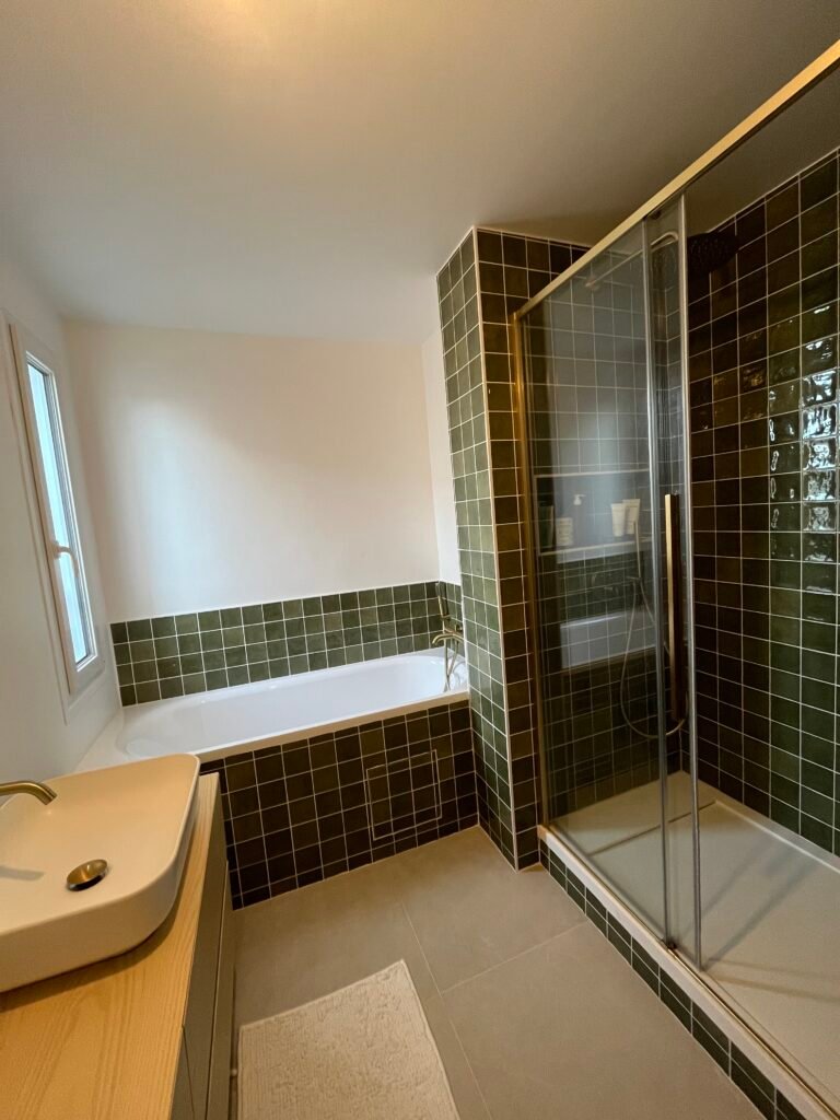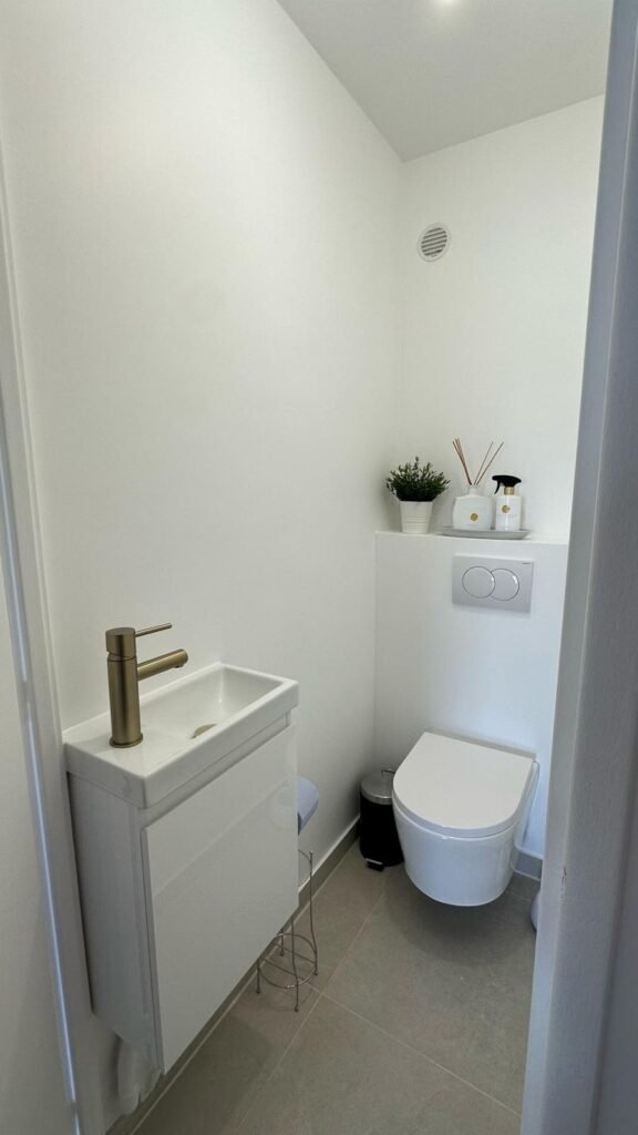 La salle de bain, quant à elle, offre désormais un cadre raffiné avec ses équipements design et ses finitions haut de gamme. Un véritable espace bien-être aux allures de spa urbain.