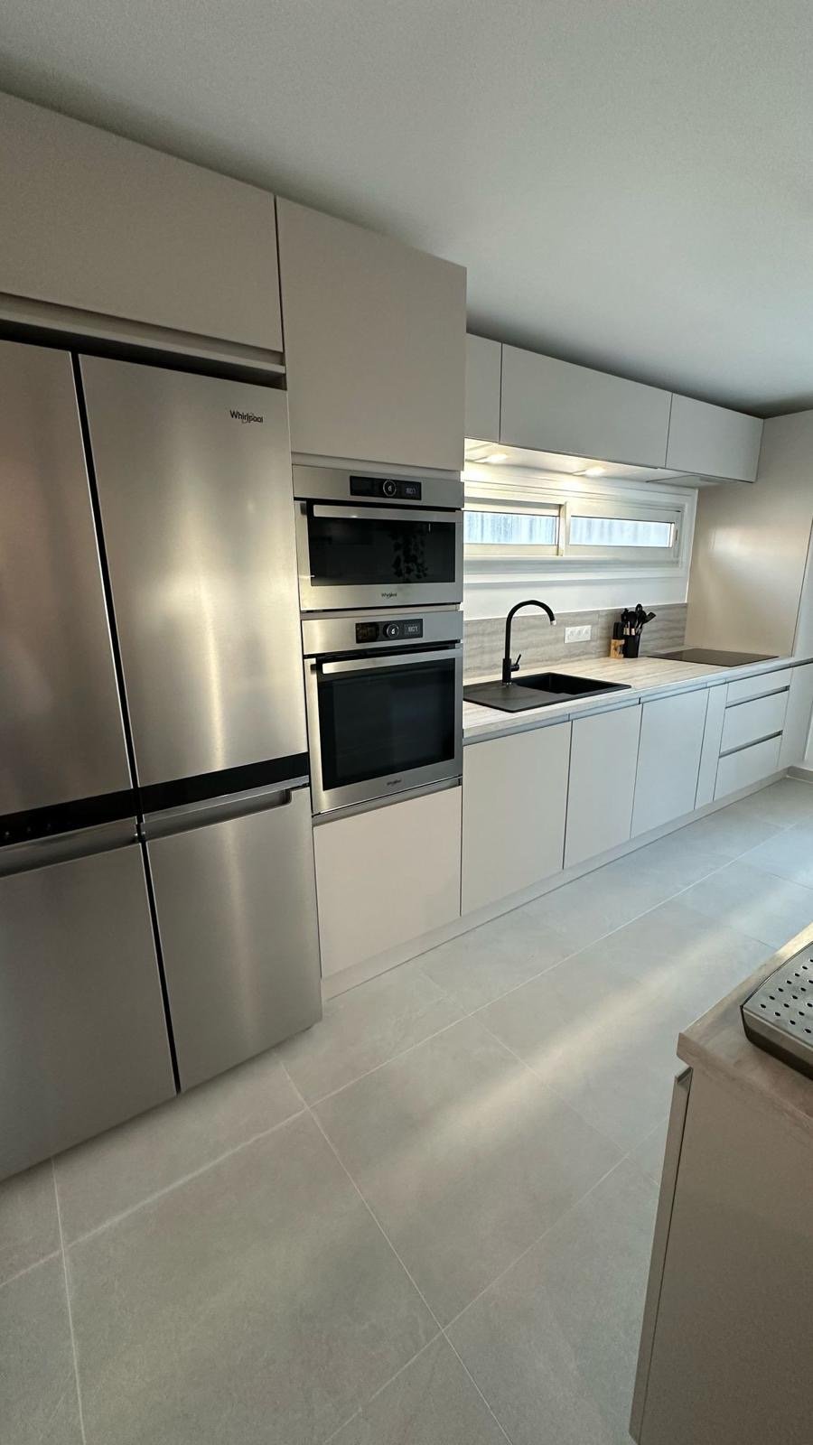 La cuisine moderne, équipée des dernières technologies, invite à la convivialité et au partage des moments gourmands. Chaque espace a été repensé pour créer une circulation fluide et une harmonie visuelle dans tout l'appartement.